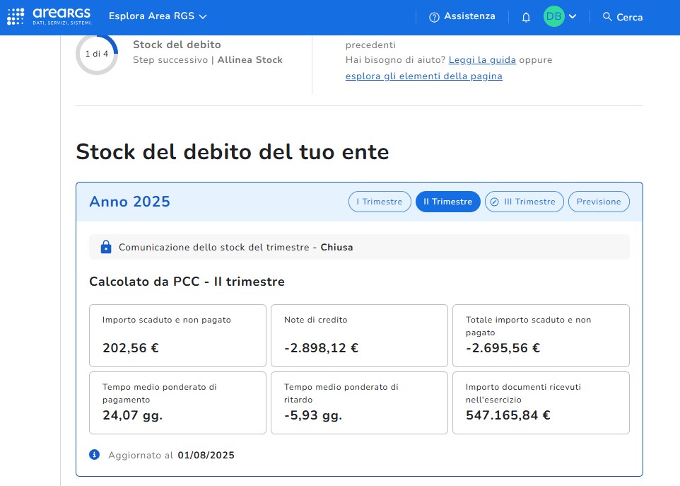 Ammontare complessivo dello stock del debito commerciale residuo scaduto e non pagato di cui all'art. 1, comma 867, legge n. 145/2018 - 2^ trim. 2025
