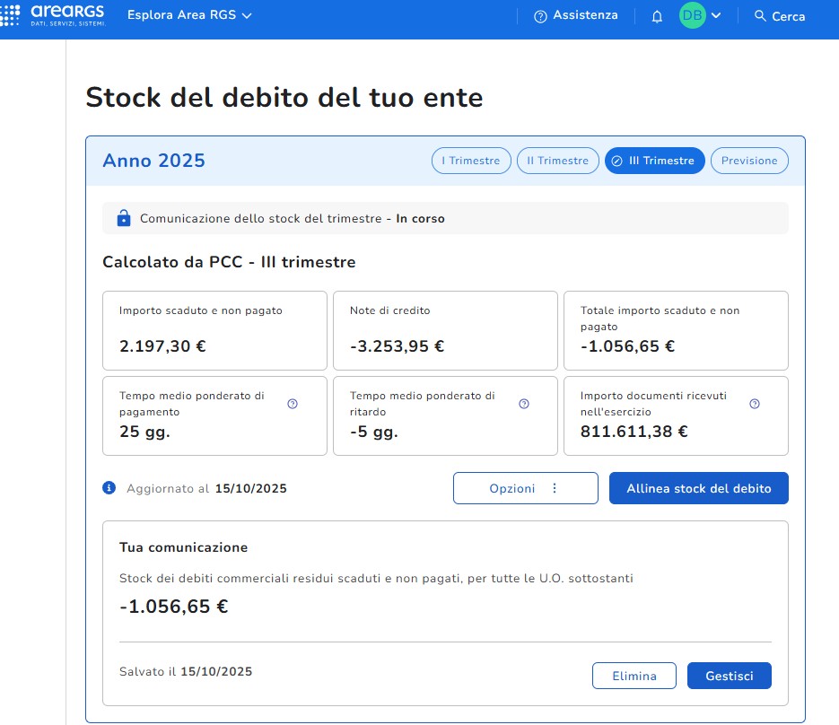 Ammontare complessivo dello stock del debito commerciale residuo scaduto e non pagato di cui all'art. 1, comma 867, legge n. 145/2018 - 3^ trim. 2025