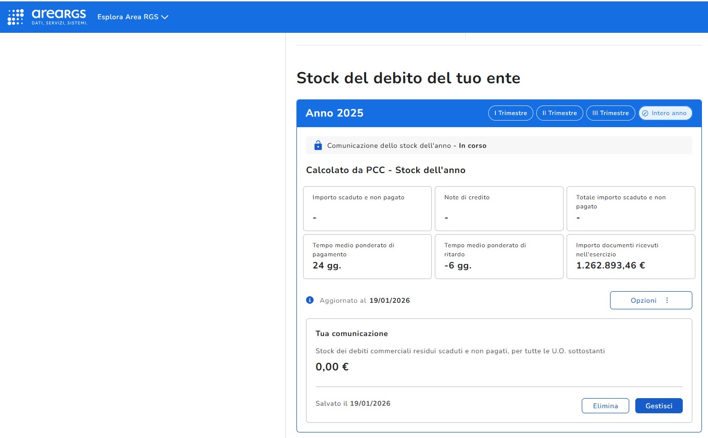 Ammontare complessivo dello stock del debito commerciale residuo scaduto e non pagato di cui all'art. 1, comma 867, legge n. 145/2018 - Anno 2025